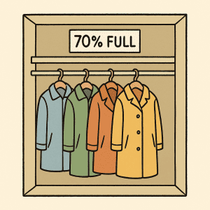 Whether it’s a coat closet, shoe rack, or umbrella stand, aim to fill it no more than about 70% full.